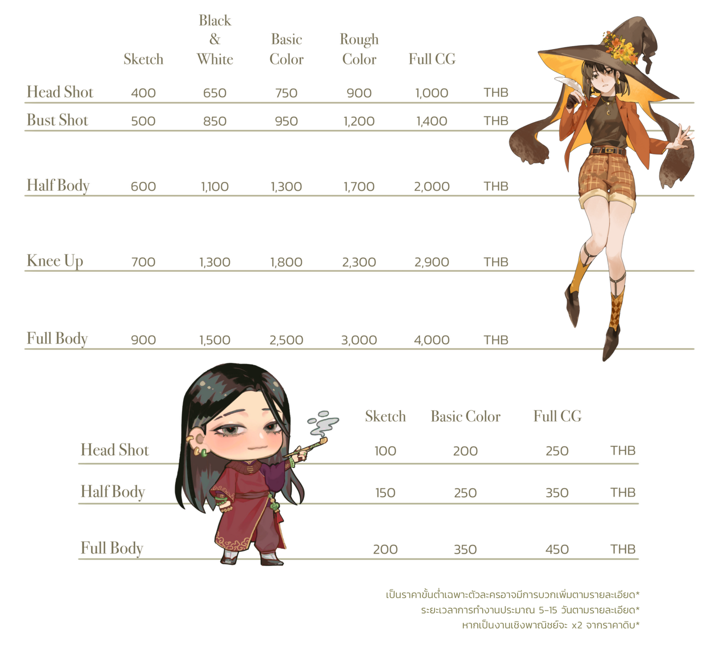 -ระยะเวลาทำงานต่อรูปอยู่ที่ประมาณ 5-15 วันต่อ 1 คิวแล้วแต่รายละเอียด